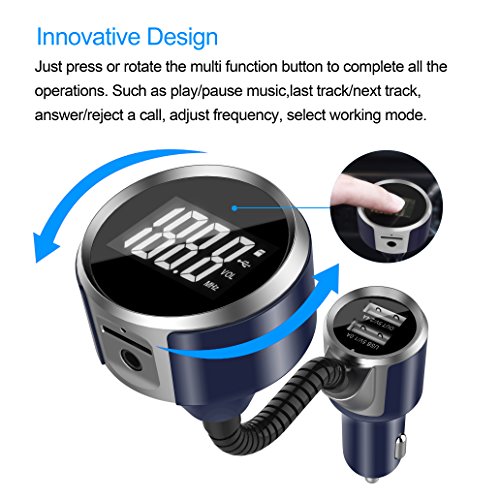 [INNOVATIVE DESIGN]: Just press or rotate the multi-function button to complete all the operation, play/pause music, last track/next track, answer/reject calls, adjust frequency, select working mode