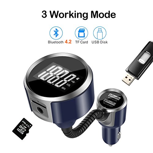 [CLEAR SOUND QUALITY]: With Bluetooth 4.2 + EDR and echo cancellation and noise suppression (CVC) technology, FM transmitter enable to deliver sharp and clear quality for both music and hands-free calls