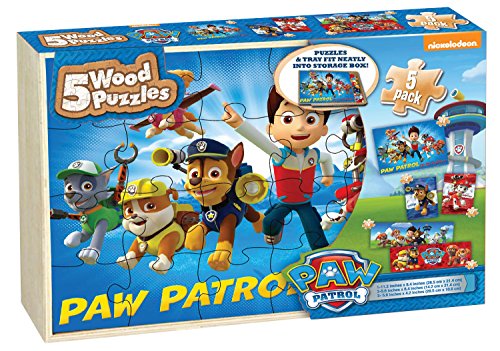 -. Feature : Paw patrol 5 wood puzzles / Featuring your favorite paw patrol characters / Beautiful full color graphics / Handy storage so you can build again