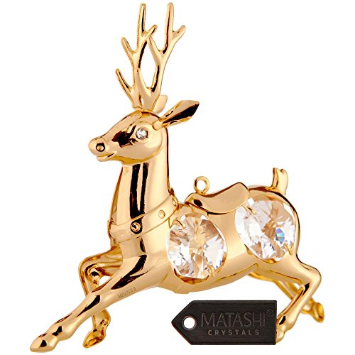- EYE-CATCHING DESIGN: A reindeer at full gallop stretches its majestic body and soars; Crafted with quality materials like 24K Gold and studded with precision cut Matashi® crystals.