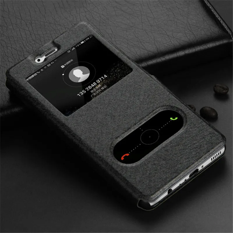 Feature 1:Bracket+side magnetic buckle+flip+smart dual window caller view case