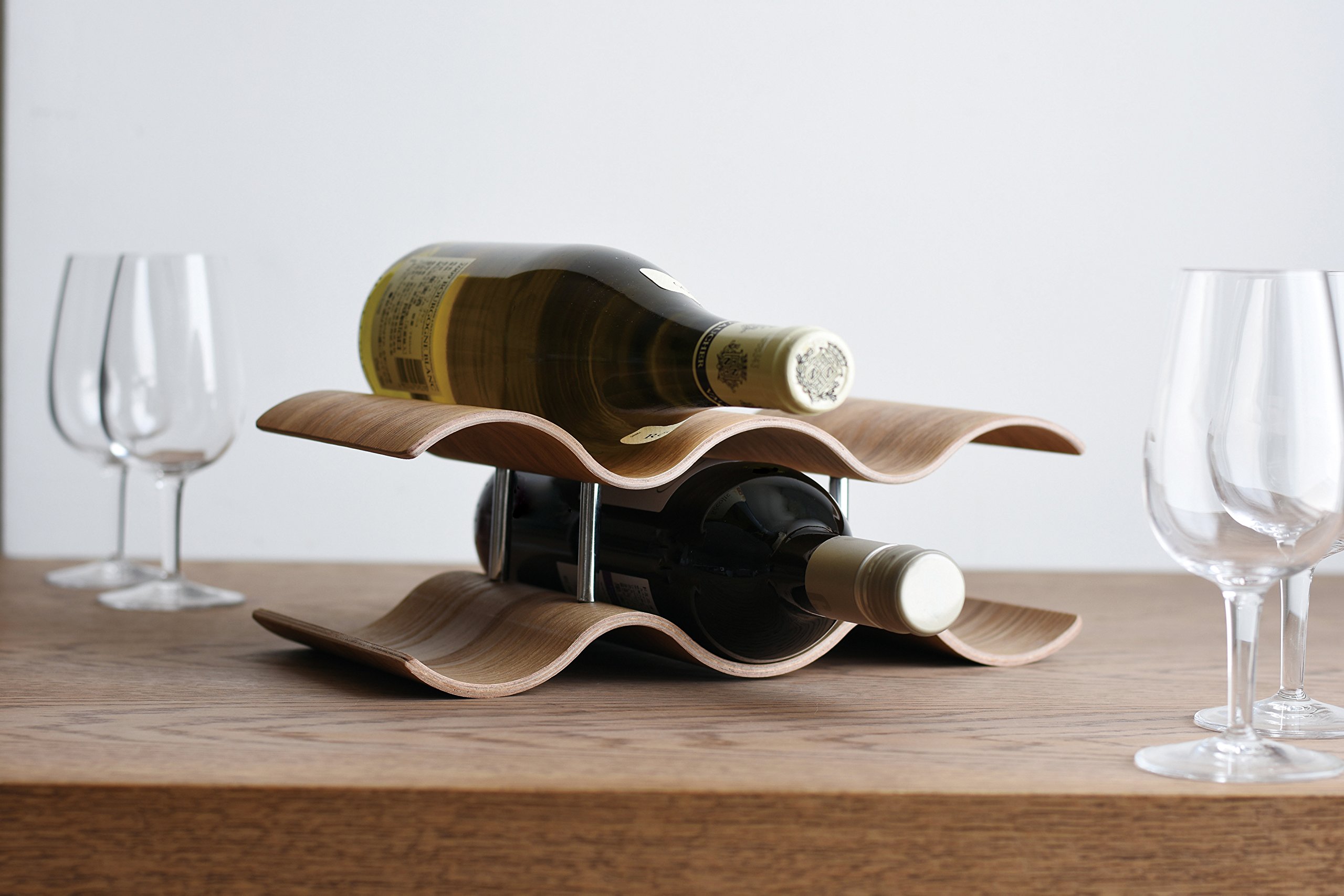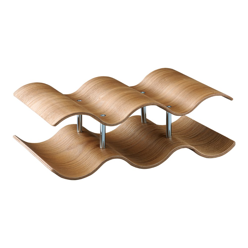 Wine rack charm with a natural texture that makes use of wood grain and smooth curves.