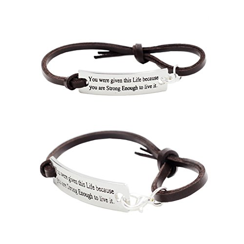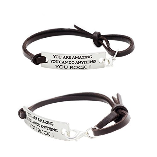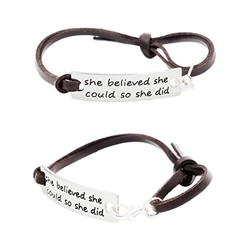 L.Beautiful Women Girls Engraved Message Motivational Leather Bracelets Set Inspirational Charm Friendship Expandable Double Strand Leather Wristband Bracelet with Gift Box(3pcs)