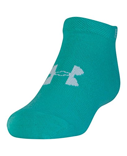 -. Binding : Sports -. Brand : Under Armour -. Department : Girls -. Feature : Flat knit conforms to foot for superior touch and feel / Dynamic arch support helps reduce foot fatigue / Heat Gear fabric wicks sweat away from your skin to keep you cool, dry, and light / Armour Block Technology helps prevent growth of odor causing bacteria in the sock / Armour Dry material wicks moisture, accelerates evaporation -. Label : Under Armour Socks -. Manufacturer : Under Armour Socks -. ProductGroup : Sports -. ProductTypeName : SPORTING_GOODS -. Publisher : Under Armour Socks -. Studio : Under Armour Socks -. Title : Under Armour Girls Essential No Show Liner Socks (6 pack), Youth Large