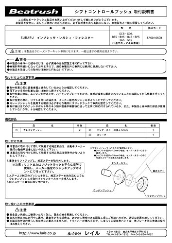 Beatrush (beat Rush) (for the 5-speed manual) shift link urethane bush Subaru Impreza [GC8 GDA] [S76010SCB]