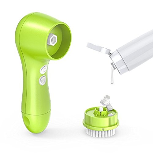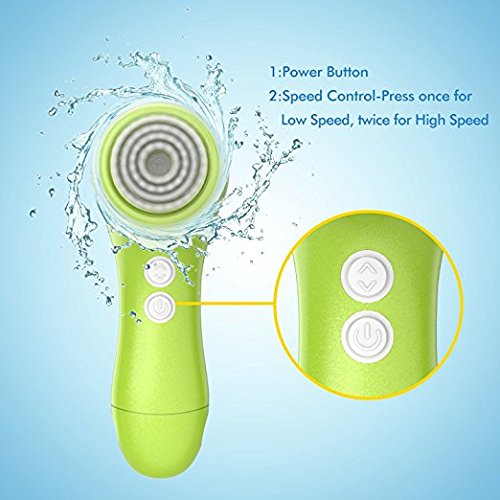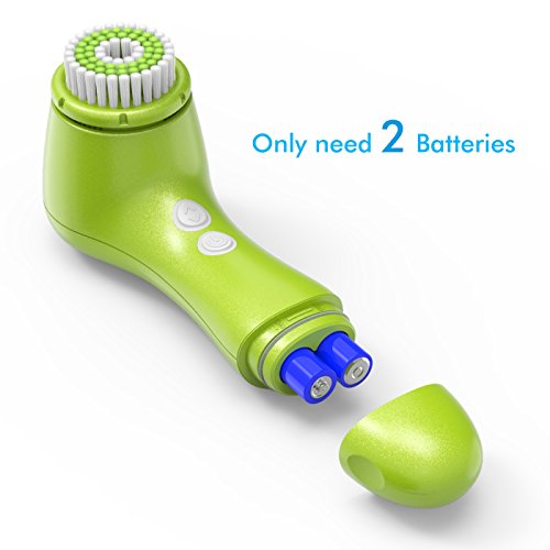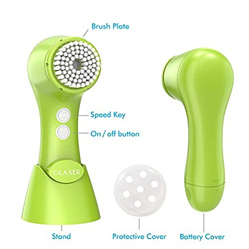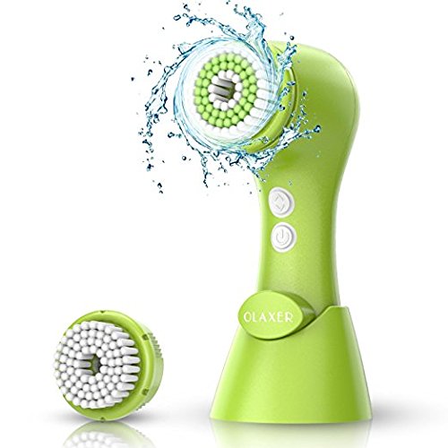 Facial Cleansing Brush, OLAXER Two Rotating Speed Face Scrubber Exfoliator Cleaning Brush Powered by 2xAA Batteries with 2 Brush Heads (Facial Cleansing Brush-Green)