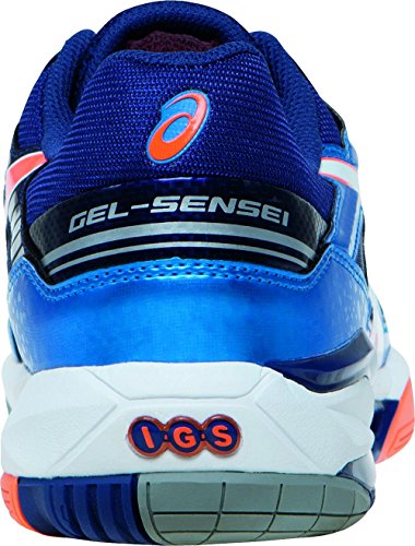 Take to the court with unprecedented confidence in the ASICS GEL-Sensei 5 volleyball shoe. This men's volleyball shoe, the top style in the ASICS family, features improved breathability and flexibility in the synthetic leather and mesh upper, with an asymmetrical lacing system to accommodate every lunge and spin. Silicone-based gel in the heel and forefoot and the SpEVA midsole give you the spring you need to get through a full day of play. The updated, volleyball-specific Impact Guidance System (I.G.S.) is engineered to enhance the foot's natural movement, which works with the Personalized Heel Fit (P.H.F.) to deliver exceptional stability and support. The ASICS GEL-Sensei 5 volleyball athletic shoe is finished with an AHAR-enhanced rubber outsole for durability and to help you stop on a dime.Feature