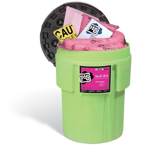 -. Feature : Lift-out, prepacked baskets speed access and guard contents from UV / Pig hazmat socks and dikes stop spreading spills; Pig hazmat pads and pillows absorb quickly / Pig hazmat absorbents are specially treated for unsurpassed performance with concentrated corrosives, such as 98 percent sulfuric acid and 30 percent sodium hydroxide / Lime green drum is easy to locate / Lightweight, 100-percent polyethylene drum resists chemicals and keeps contents clean and dry