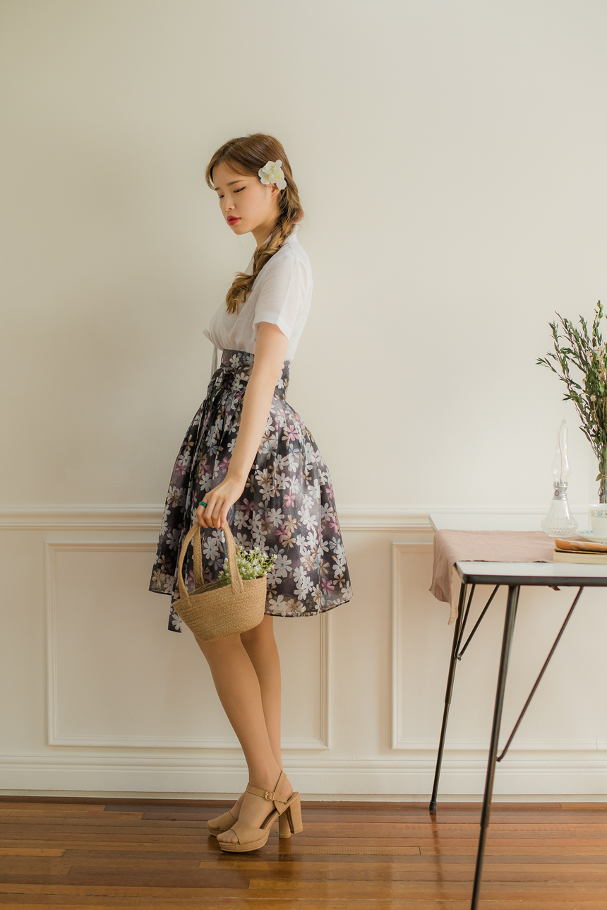 원단 자체에 힘이 있어 속치마를 입지않아도 꽃봉오리처럼 봉긋하게 예쁜 치마핏이 나와요.