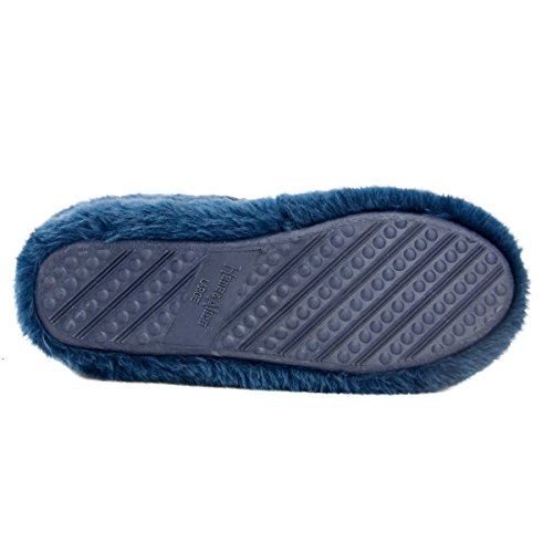 -. Binding : Apparel -. Brand : Leve -. Color : Blue -. Department : mens -. Feature : Fuzzy Slipper size: small 5-6(8-9 inch); medium 7-8(9.4-9.7 inch);large 9-10(10-10.4 inch) / Fluffy slippers has anti-slip thick rubber soles, house slipper's insoles is not removable / No awful smell in the mens slippers, suggest put slippers under the sun at first time / Faux-fur lining material make slippers very warm and cozy / Knitted woven upper,very fashion and anti-dirty in winter -. ProductGroup : Shoes -. ProductTypeName : SHOES -. Title : Leve Fuzzy Slippers, Fluffy Slippers Stain Resistant Indoor Rubber Sole House Slippers For Mens Woman Blue (L: 9-10(10-10.4inch))