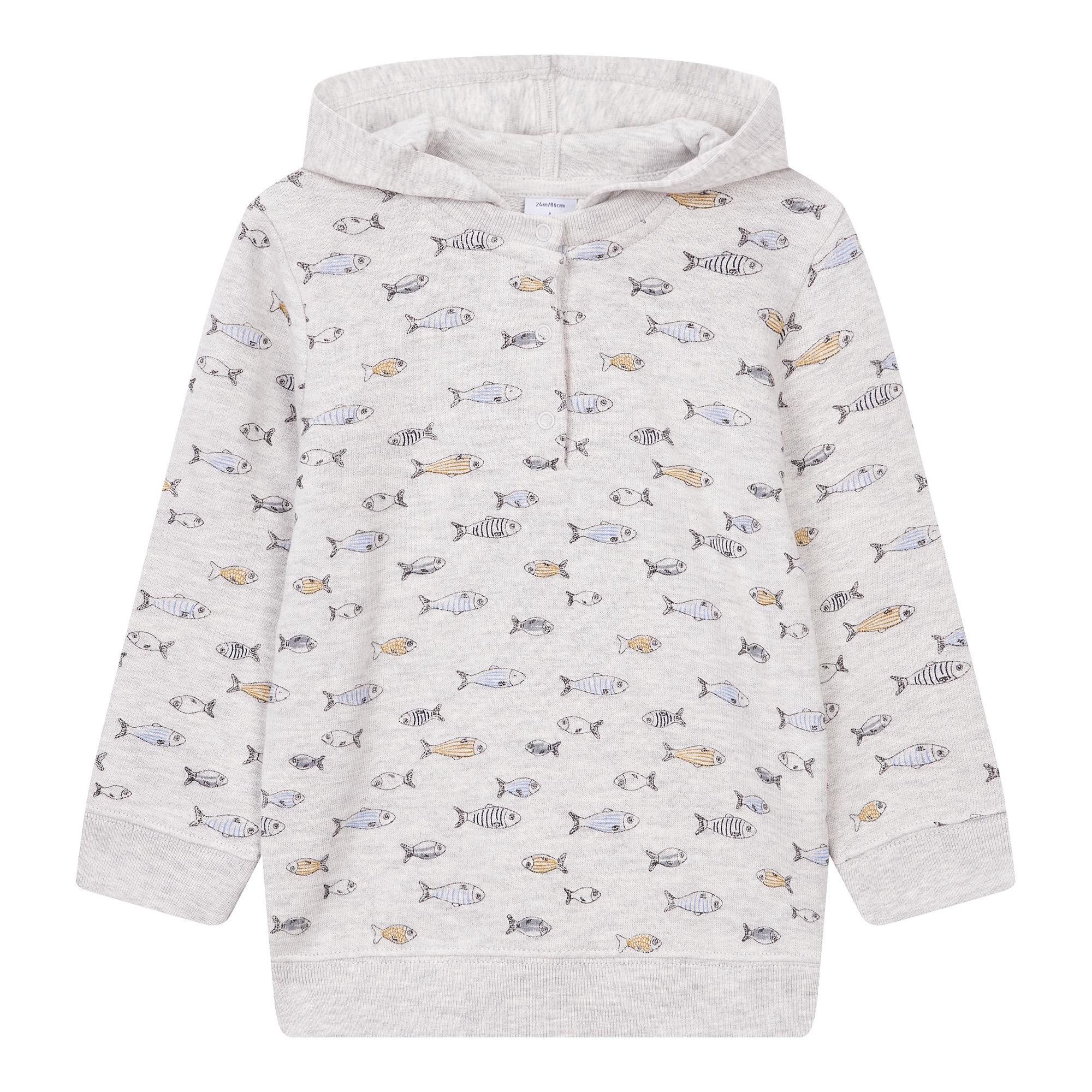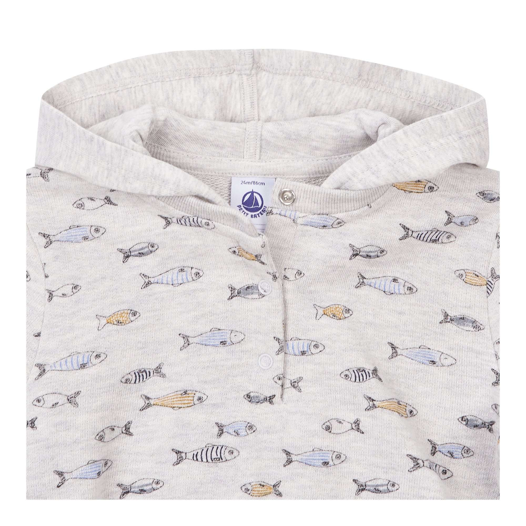 컬렉션 : 2018 Spring/Summer 디자인 포인트 : - 올오버 물고기 패턴 디테일이 돋보이는 캐주얼한 무드의 후드 티셔츠- 스냅 버튼 클로징 디테일로 실용성을 더한 디자인- 부드럽고 편안한 착용감을 자랑하는 면 소재의 아이템 스타일링 추천 : 베이직한 코튼 팬츠 혹은 데님팬츠와 캐주얼한 스타일링을 연출 할 수 있음