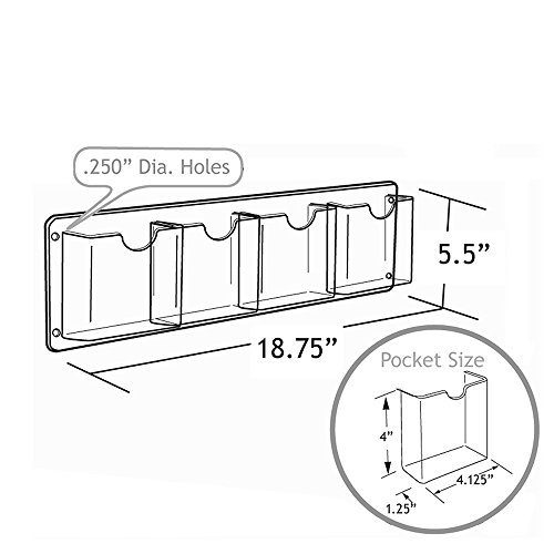 Azar Displays 252064 18.75" W x 5.5" H Horizontal Four Pocket Wall Mount Brochure Holder (2 Pack)