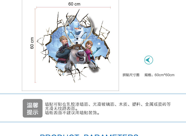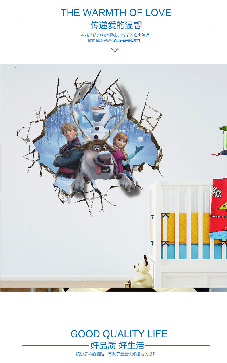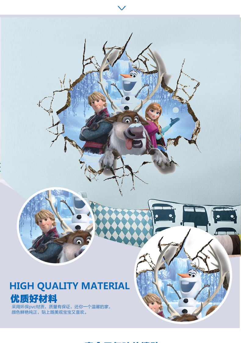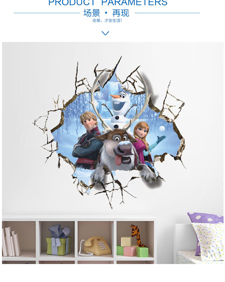 冰雪奇缘3D破墙装饰墙贴儿童房卧室幼儿园教室装饰贴装饰贴纸