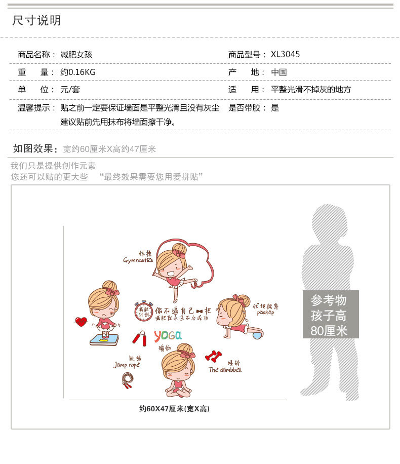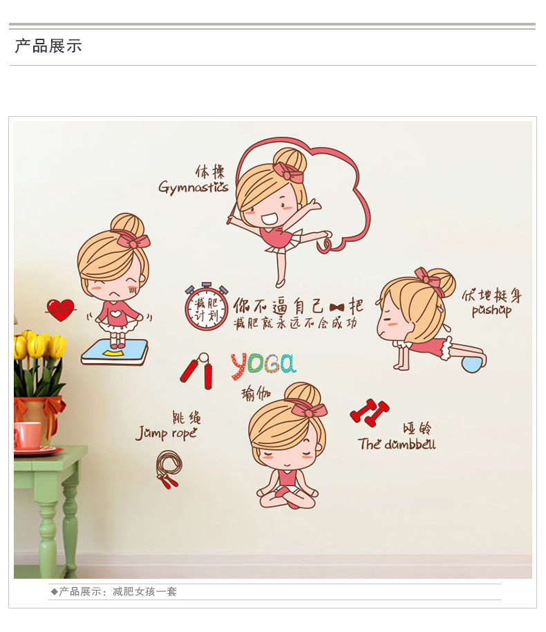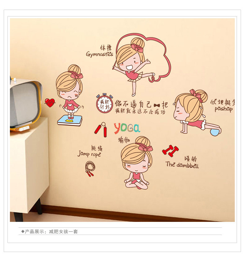 女孩卧室墙贴减肥瘦身个性励志贴画宿舍寝室装饰贴纸床头桌面布置