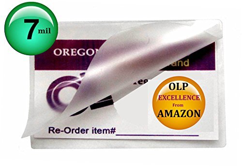 100 Oregon Laminations Premium brand Business Card size 7 mil hot laminating pouches 2-1/4" x 3-3/4" with standard 1/8" radius rounded corners and clear gloss finish. High gloss finish makes colors pop. Maximum sheet size recommended for this pouch is 2" x 3-1/2" (or less) to leave standard 1/8" border of clear laminate around all sides of card for a secure sealed edge. -Metric specs = 57mm x 95mm and 175 microns thick per flap. Made of PET polyester plastic and heat activated thermal adhesive on both flaps. -> TIPS: Industry standard specification for 7 mil laminating pouches is 7 mils on each flap for a total of 14 mils added to your paper sheet. Also, 1 mil equals 1/1000th of an inch (or 25 microns metric). The industry calls these laminating pouches when they are sealed on only one edge instead of three. They should be called laminating folders. -> PLEASE READ: Be sure "In Stock" says: "sold by Oregon Laminations Company". Otherwise, you are not getting Authentic Oregon Lamination Premium quality Laminating Pouches as listed; however, you can choose the #"new from" link to find the Only True Source of OLP fine Laminating Supplies. -> PLEASE do NOT post bad rating for these Laminating Pouches when you purchase from other sellers Piggy-Backing on this listing who must substitute Laminating Pouches of their choice. This unfairly harms the reputation of these fine OLP Laminating Pouches. Thank you in advance for understanding.Feature
