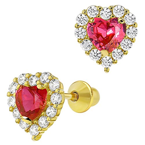 Ruby Cubic Zirconia Heart Halo Earrings