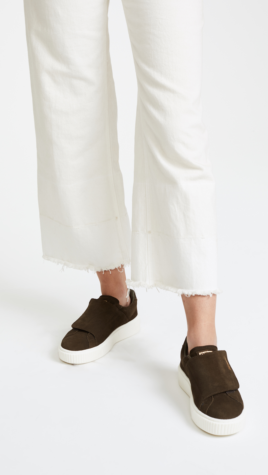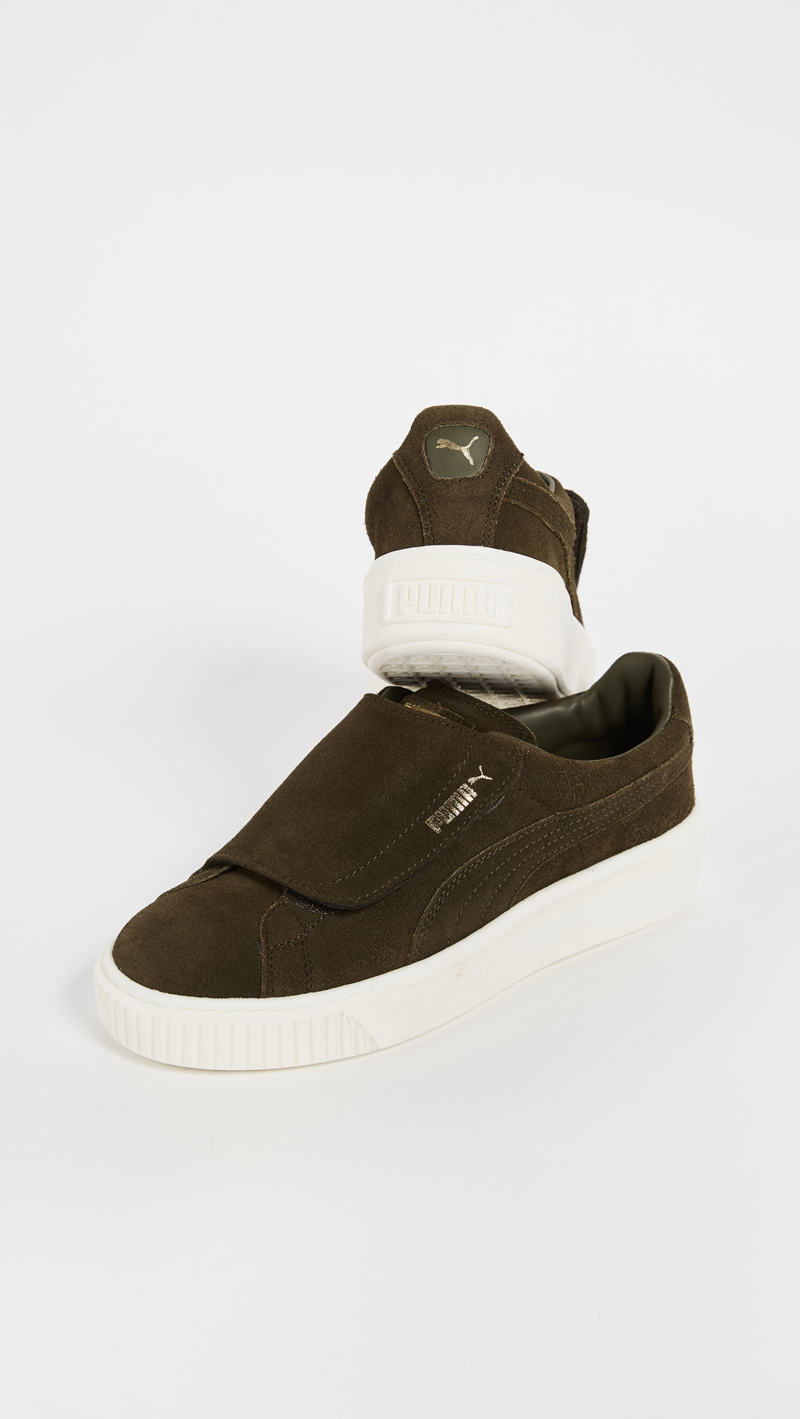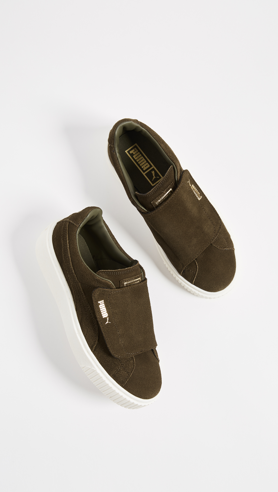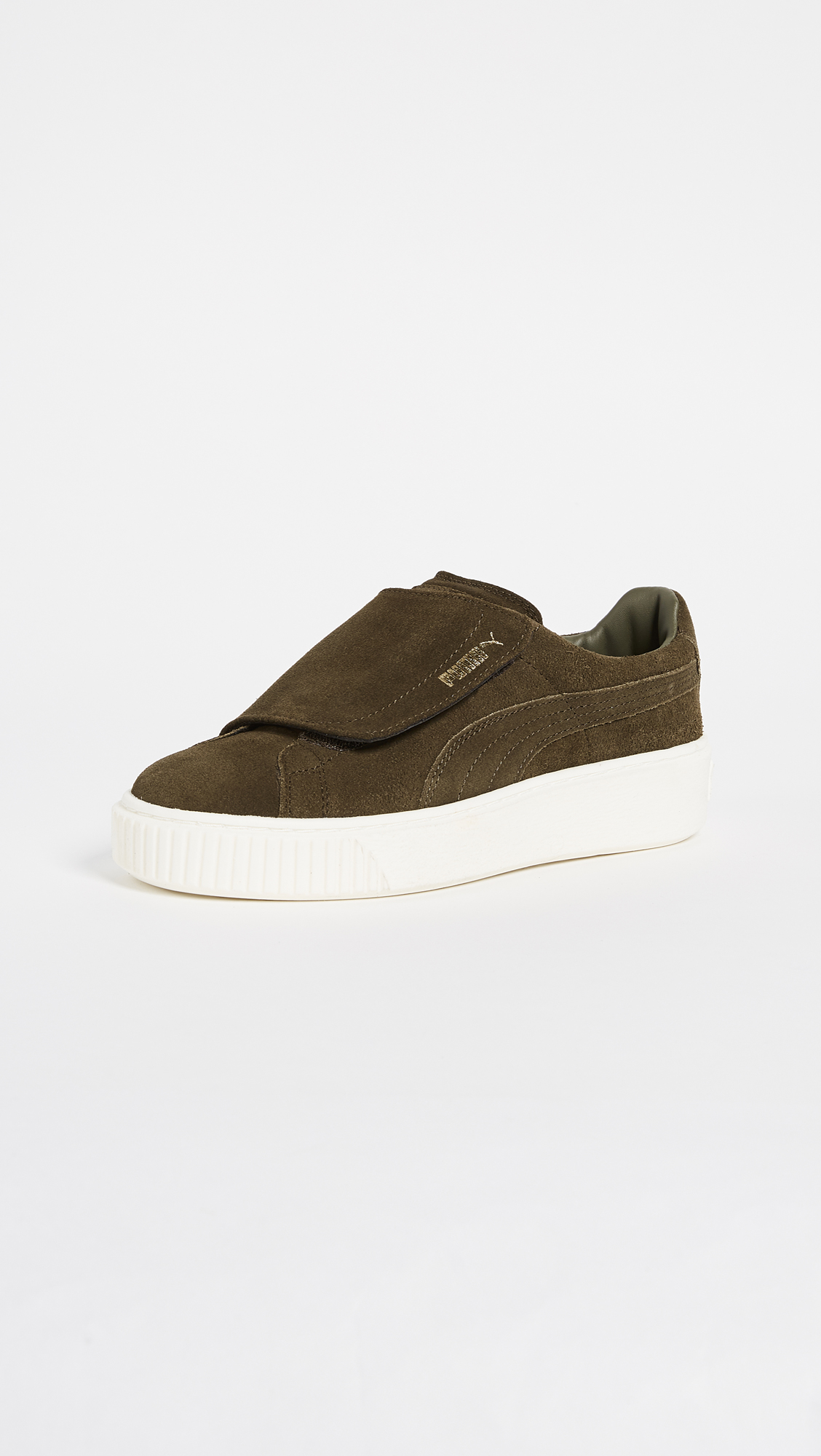 A wide Velcro strap and inset elastic secure the top line on these suede PUMA sneakers. Textured platform. Rubber sole.Leather: Cowhide.Imported, Romania.This item cannot be gift-boxed.MeasurementsHeel: 1.25in / 34mmPlatform: 1in / 25mm