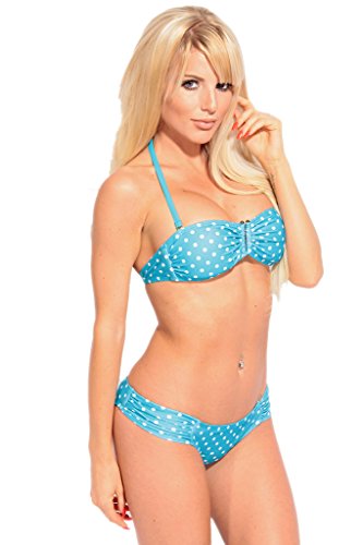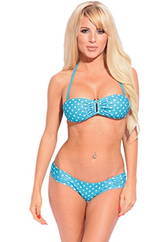 Title : Dippin' Daisy's Blue and White Dots Bandeau Bikini with Tab Side Bottom Size S