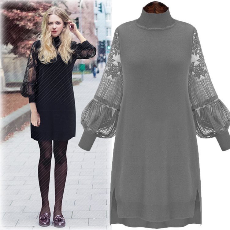 ワンピース 花柄 シースルー レース刺繍 バルーンスリーブ 大きい サイズ 20代 30代 40代