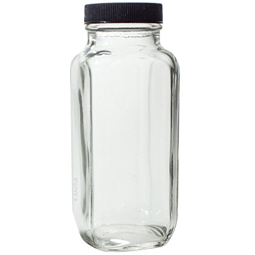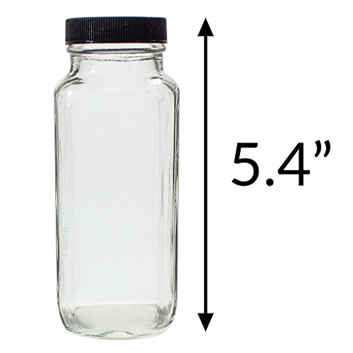 8 oz Clear Thick Plated Glass French Square Empty Bottle Jar with Lid (3 Pack) Perfect for Home, Travel, Juicing, Kombucha