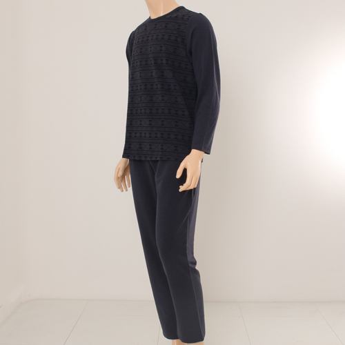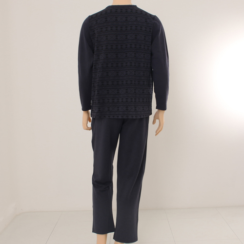 블루톤에 기하나염으로 포인트가 된 상의로 연령층 상관 없이 입을 수 있는 제품 입니다.