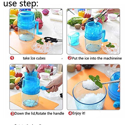 -. Feature : Material: Food Grade ABS, safe, hygienic, easy to use, convenient, lightweight, also elderly children can use / EASY GRIP - Easy to use, a must in every kitchen, bar, restaurant, coffee shop, cocktail party drinks (whisky drinks), can be hang for convenient storage. / You get great, clear ice every time with this ice crusher blender, make sure you dry the ice crusher after every use. / use Instructions -- one hand press the lid, one hand to rotate the, You can make delicious little cold sand. / Perfect for Smoothies, ice cream, milk tea, cola, juice, etc. The best Gift for your Kids & Children!