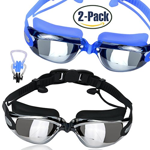 -. Feature : WARM COMBINATION SET : Each set includes 2 Pack of Goggles (electroplating lenses)+ 2 Pack of Nose Clip ,featuring Two Decent Colors, Adjustable Head Straps,Functional Clips / ANTI FOG&UV PROTECTION : UV protection and anti-fog coating provide you an excellent swimming experience under water. Anti fog protection can offer you a clear and long distant view under water and UV protection can help protect your eyes from being hurt by UV and bright lights. / NO LEAKING : Ergonomic completely sealed silicone protective circle design prevent water from entering your goggles / COMFORTABLIE : Headband is made of soft and elastic silicon, Adjustable headband ,Easy quick release design / 100% LIFETIME MONEY BACK GUARANTEE : If you are not 100% satisfied with your purchase, we'll gladly refund every cent.