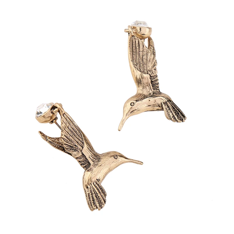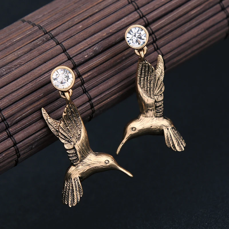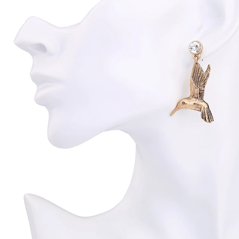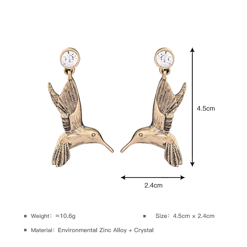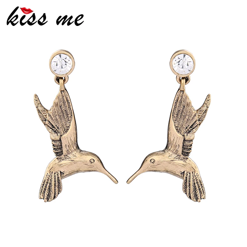 Production name ::KISS ME Antique Gold Color Alloy Bird Women Earrings 2017