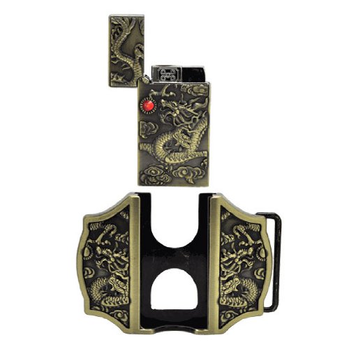 Studio : Buckle Rage Publisher : Buckle Rage Binding : Apparel Product Description Removable Lighter Dragon Belt Buckle, This clever Belt Buckle is made of zinc alloy, this durable buckle is designed to fit standard 1.5" snap on belt. Never go anywhere without your lighter again! Great to give as a gift or purchase for yourself! Matches most outfits!, Buckle Comes with Refillable Real Working Lighter, Fits a Standard 1.5" Snap On Belt, Crafted in Zinc Alloy, Antiqued Finish, The buckle size is 3.5" x 2.5" x 0.5". 0