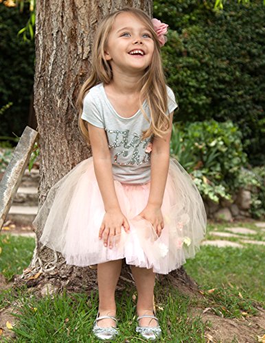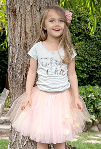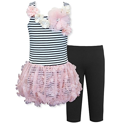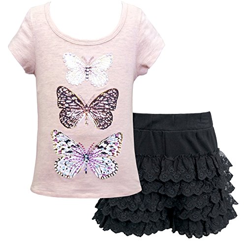 The PINK-BLACK set features a fun ruffle tiered crop top with daisies embellishments paired with an adorable stripe ruffle SKORT.