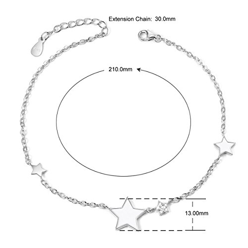 -. Feature : Environmental friendly 925 sterling silver with enamel star charms, this anklet bracelet shines with beauty and adds a luxurious look. / Size: about 400mm in perimeter; Pendant: 20x9mm; Chain Extension: 50mm. / Very cost-effective! Surprise her with it! / QUALITY GUARANTEE: All our 925 sterling silver products are quality made and are protected from tarnishing. / A perfect accessory to your outfit or as an appropriate gift, e.g. for your Daughter, Lover, Girlfriend, Fiancee, Wife, Mother, Couple, Valentine or just a Friend,etc; Suitable for Valentine's Day, holiday, ball, party, anniversary, prom, graduation, birthday or any special occasions; Click on our Storefront for more stylish and newest jewelries.