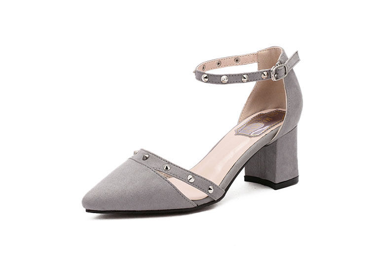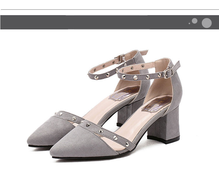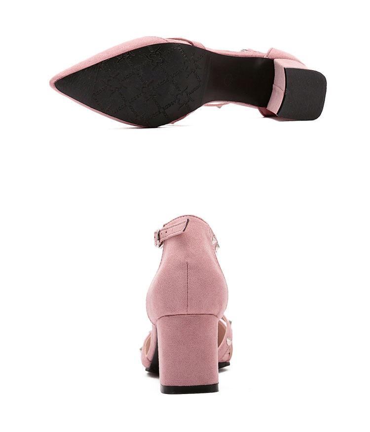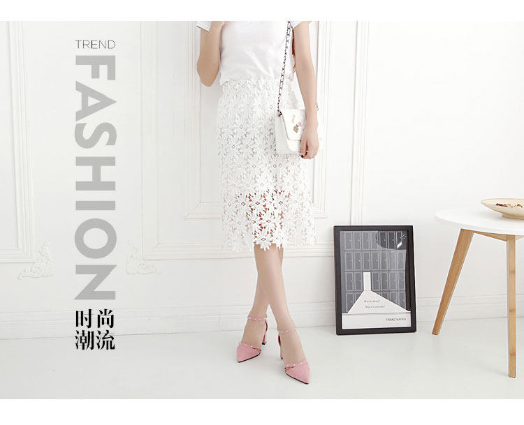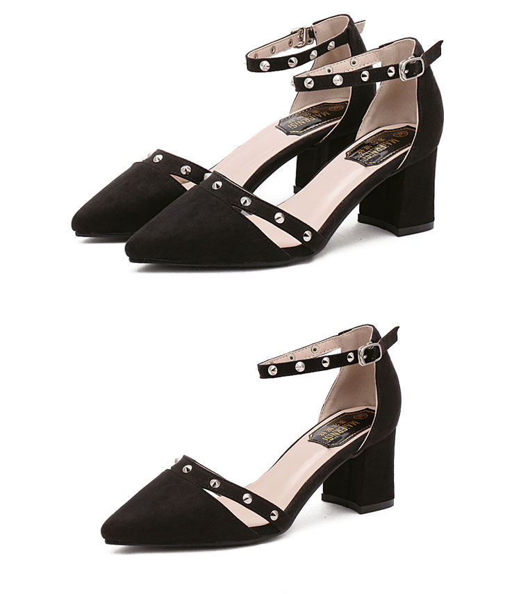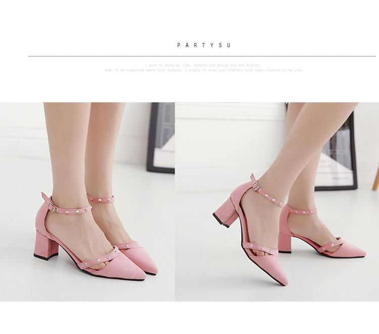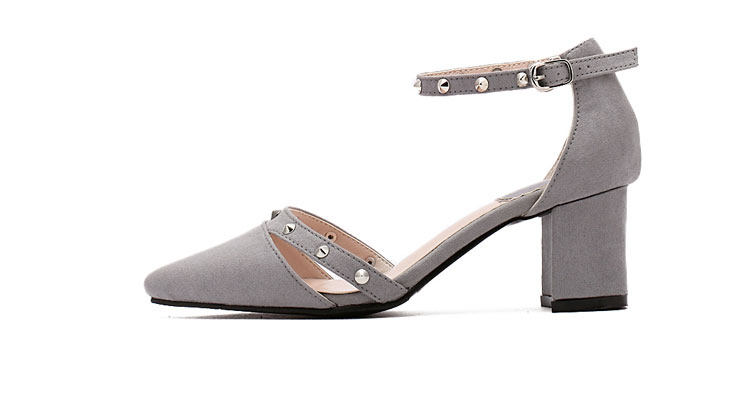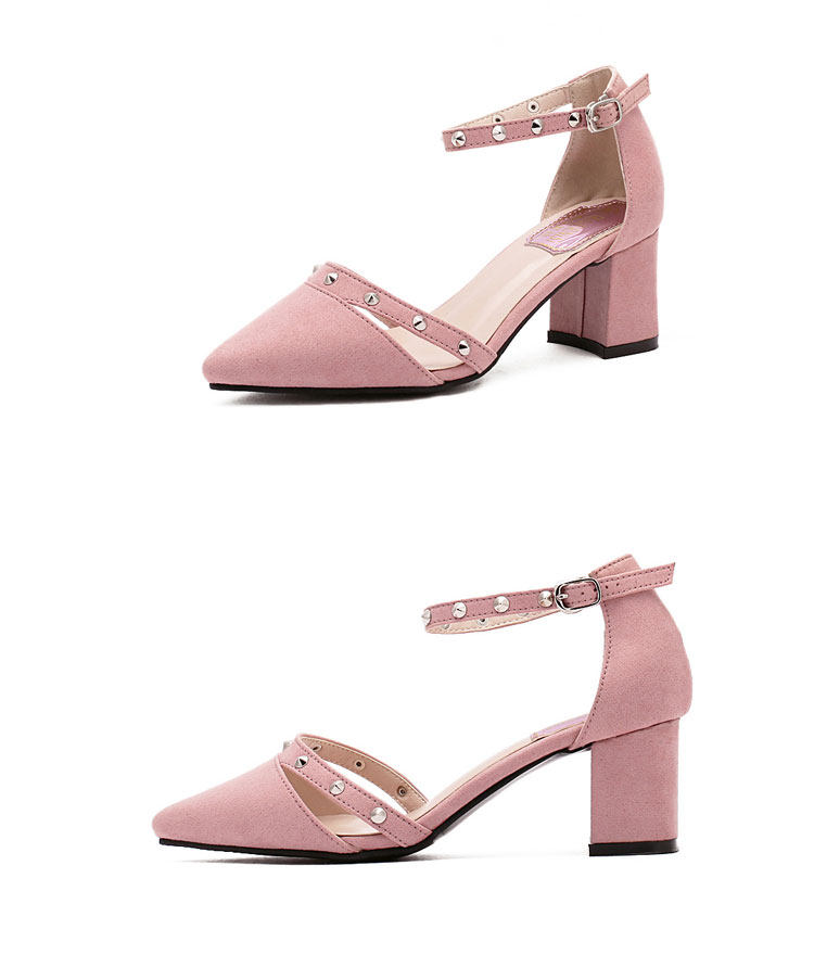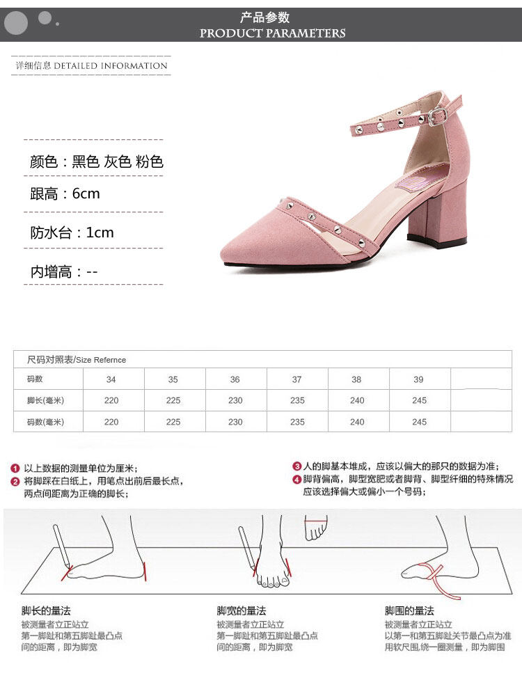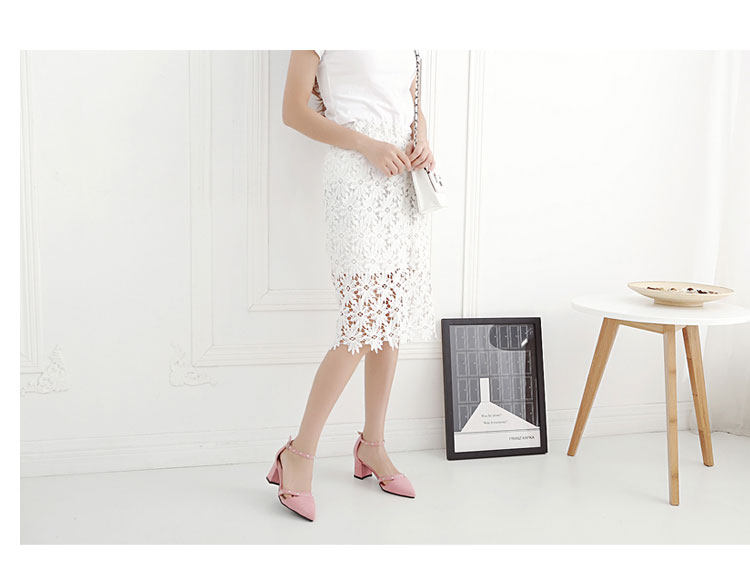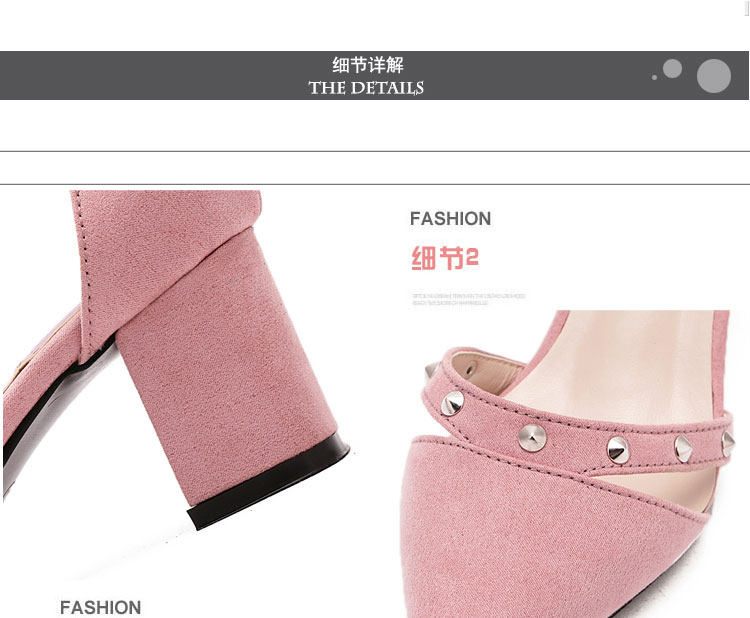 女鞋夏季新款尖头高跟鞋粗跟镂空方跟中空女士凉鞋中跟包头鞋