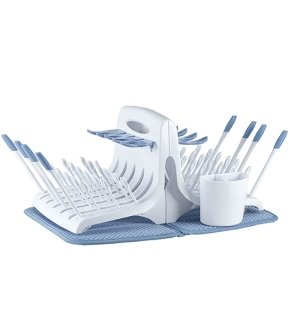 - Feature : Unique design uses vertical space to save counter space, Rack separates into 2 parts for versatility / Soft but effective bottle and nipple bristles won't scratch bottles or nipples / Features an absorbent, microfiber, machine-washable drying mat / Comfortable, ergonomic design and non-slip grip / comes with SmartSpace Drying Rack and SmartBrush