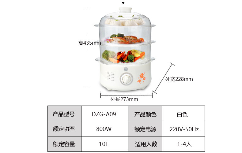 Brand: Happy a bite Model: W-A09 Steamer total capacity: 10L and above Color Category: White Control: Mechanical Layers: 3 layers