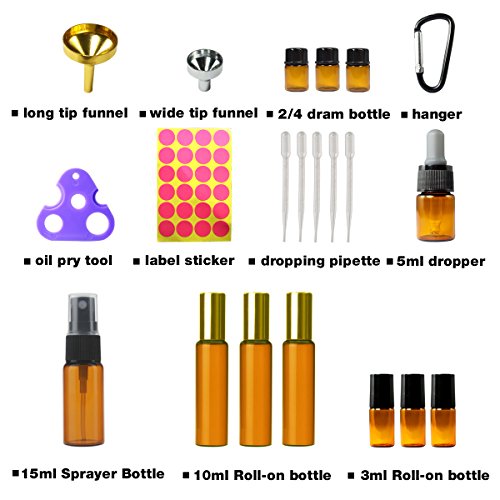 The More , The Merrier ! Package include 22pcs useful bottles and tool ( Include Blend/Dropper/Roller/Sprayer Bottles Label Sticker and Oil Key Tool,lid droppers), with these useful tool .Its so easy to dispense the essential oil , or Make your own blend