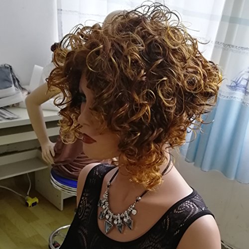 QianBaiHui Short Kinky Curly Wigs for Black Women - American African Heat Resistant Synthetic Hair Fashion Wigs (Blonde)