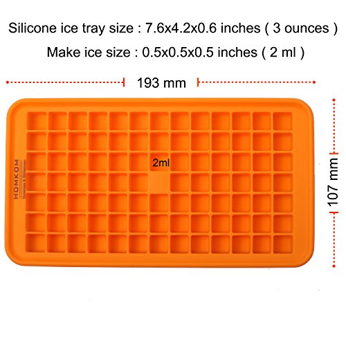 HOMKOM - 91 Cavity / Square Silicone Mini Ice Cube Tray Ice Mold Ice Maker - Freezer Safe / Make Amazing 0.5 Inches Square Ice Cubes ( Orange )