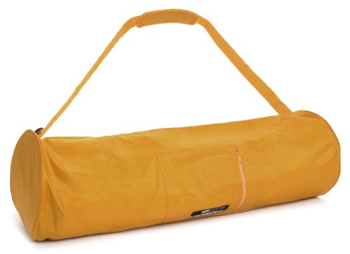 Product Description Consisting of waterproof nylon, with adjustable shoulder strap and convenient additional pocket. Adequate for mat width 75cm. The ideal mat bag for yogimat nature - 75cm. Color: saffron 0