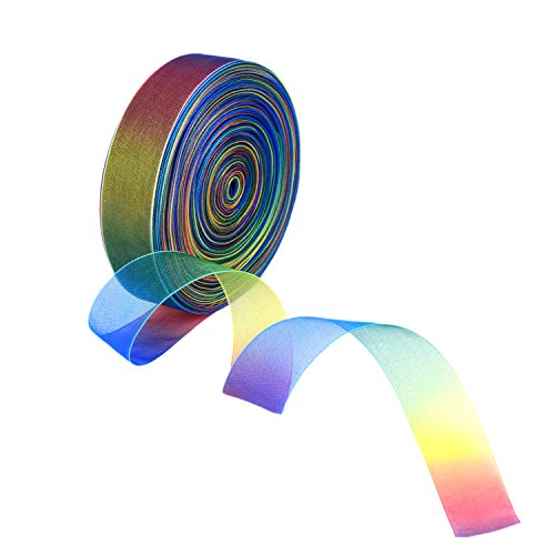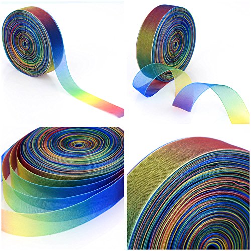 Shappy 1 Inch Shimmer Sheer Organza Ribbon, Rainbow Colors (100 Yard)