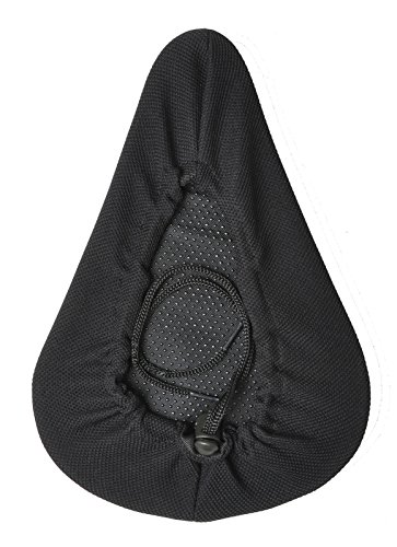 Extra wide design with gel for maximum comfort. Fits over most seats on standard or stationary bikes, including spinning bikes. Durable weather resistant fabric for extended wear. Locking draw cord for a secure fit. Features: - Made of anti skid and wear resistant neoprene
