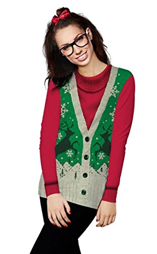 -. Feature : Long-sleeve T-shirt printed with realistic sweater design / Perfect for Ugly Sweater Holiday Parties / Machine Wash / 100% Polyester