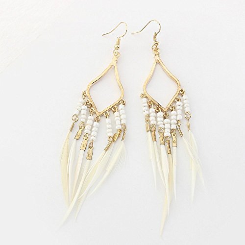 A&c Bohemia Feather Tassel Earrings for Women, Fashion Ear Drop for Girls. (White)