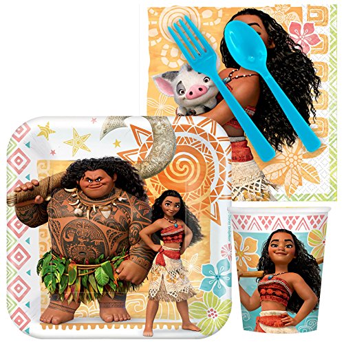 -. Feature : Includes (8) paper dessert plates, (16) beverage napkins, (8) 9 oz. paper cups, and (8) sets of plastic forks and spoons. / Add matching tableware, favors, accessories, or a party kit bundle to complete your birthday party! / Features Moana and Maui from the new Disney movie!