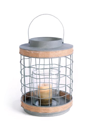 -. Feature : 11.5 Inch wide x 16 Inch high / Can hold candles for outdoor use / Iron and Rope with clear glass inside enclosure / Country Chic garden decor