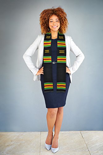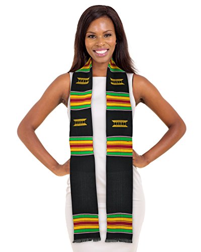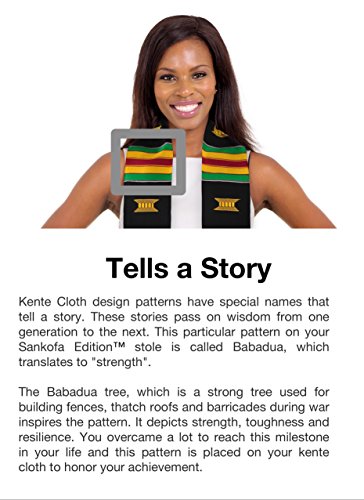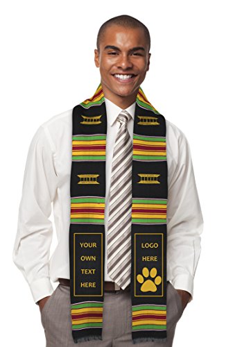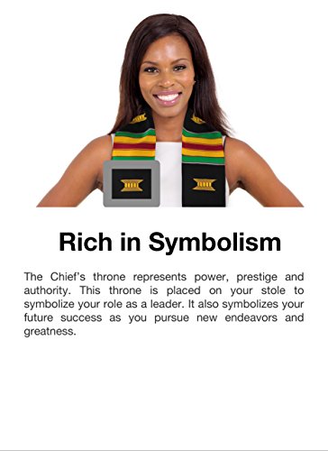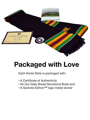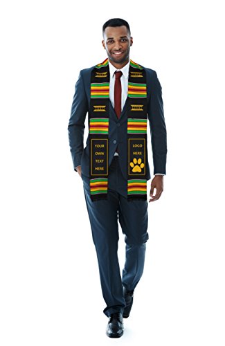 Product Description PLEASE NOTE: IRON ON LETTERS/EMBROIDERY SOLD SEPARATELY. Looking for a custom kente cloth stole? You can customize this stole by adding your own embroidery (most malls have a shop that can do it for you). This is a fun DIY project. These make a great gift as you can add a graduate's name, fraternity/sorority letters or school logo. THE KENTE CLOTH STORY: The year is 1711 A.D. in what is now Ghana, West Africa - two friends, Krugu Amoaya and Watah Kraban are hunting one afternoon and come across a spider weaving its web. Astounded by its skill and beauty, the friends return back to their village and recreate the spider's techniques and weave a cloth, by hand, out of black and white fibers from a raffia tree. They present this cloth to their King. The King decrees this first Kente Cloth as Royal clothing and accelerates Kente's standing as an attire reserved for very important events. The tradition of kente weaving and it's use for special occasions continues to this day. This absolutely perfect Kente Cloth Graduation Stole from ADVANSYNC LLC is a beauty to behold. The entire stole is crafted by hand; even the symbolic Royal Stool embroidery is stitched by hand. It is the perfect accessory to wear on your graduation day, wedding or speaking engagement. Cross into a new milestone of your journey embracing a tradition of royalty. This perfectly-sized Graduation Sash measures 4.5 inches wide by 72 inches long and is hand-woven by expert artisans in Ghana, West Africa. You'll look completely amazing in the rayon/cotton blend Kente Stole while taking pride in knowing that you're empowering people in an African nation to earn a living. Every graduate needs a great Graduation Gift, so order one for yourself and a friend. Don't take chances with your Kente. Be sure that you are wearing genuine Kente by buying from the authentic source. This ADVANSYNC Brand Kente Stole Combo Pack includes an Our Daily Bread Daily Devotional and Certificate of Authenticity. 0