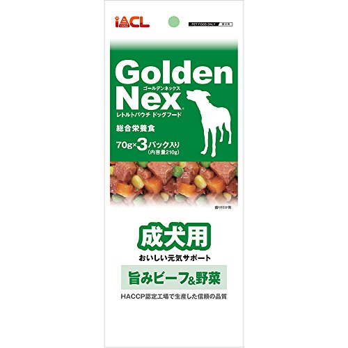 原材料:ビーフ、チキン、コーンスターチ、野菜(にんじん、グリンピース、とうもろこし)、グリセリン、大豆たん白、増粘安定剤(キサンタンガム)、ミネラル類(Mn、Zn、Fe、l、K、Ca)、塩化コリン、ビタミン類(D3、B1、B2、パントテン酸、ナイアシン、B12、A、E)、紅麹、カラメル色素、発色剤(亜硝酸Na)