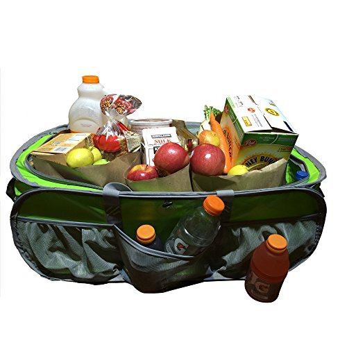 K-Cliffs Heavy Duty Trunk Organizer Large Pop-up Grocery Cargo Bag Tarpaulin Gym Duffel, Laundry Bag, Closet Bag Market Grocery Tote Bag Beach Picnic Bag Fit Truck SUV and Car, Black/Silver