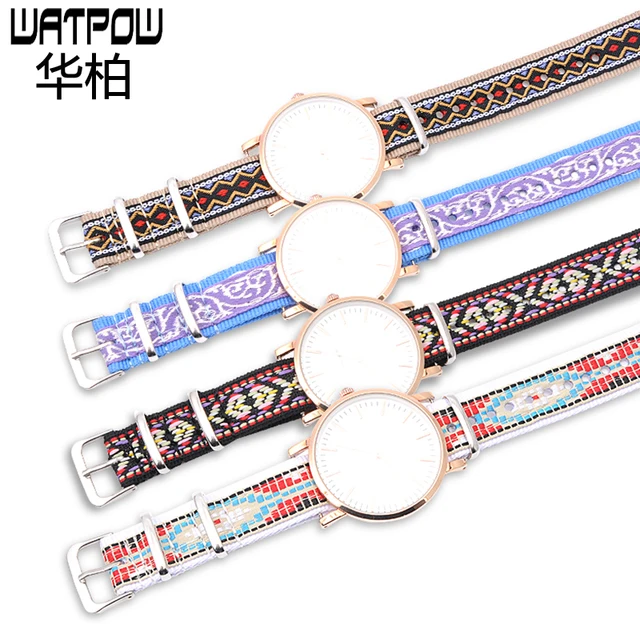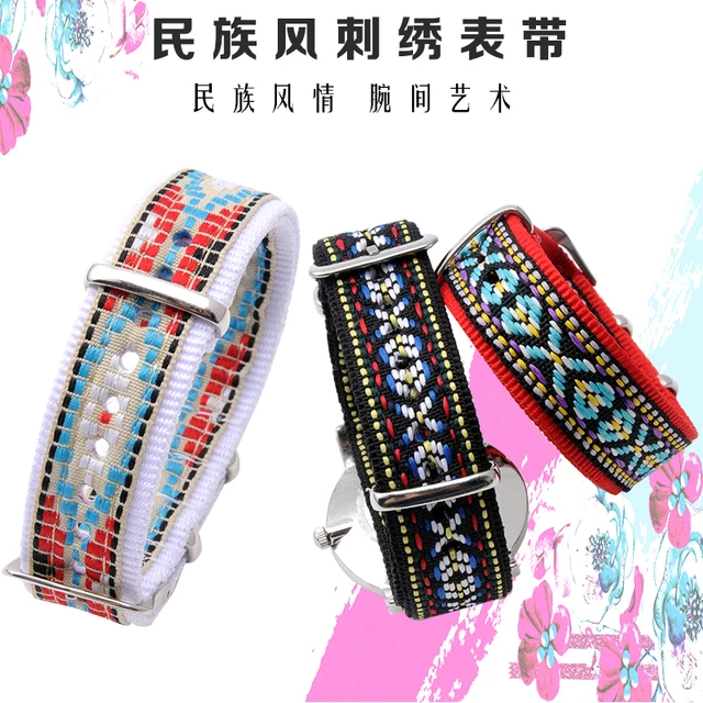 | [해외]민족 자수 18 미리메터 시계 스트랩 daniel wellington 대한 timex 여성의 여성 벨트 시계 줄 범용 스트랩 시간 |