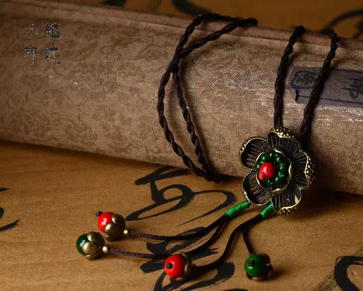 Specifications: Necklace circumference of about 88cm, bronze flower diameter of about 3.8cm, diameter of about 1.1cm pendant flowers