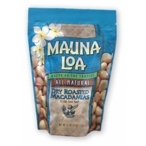 -. Binding : Grocery -. Brand : Mauna Loa -. Feature : Includes 2 resealable 11oz bag of Mauna Loa Dry Roasted Macadamias with Sea Salt / Made with only two ingredients - macadamia nuts and salt - All natural product & kosher snack / Add a taste of the tropics to your snacking, baking, and cooking. / Great for gift giving - Made in Hawaii / Support made in the USA -. Label : Mauna Loa -. Manufacturer : Mauna Loa -. NumberOfItems : 2 -. PackageQuantity : 2 -. ProductGroup : Grocery -. ProductTypeName : GROCERY -. PublicationDate : 2011-07-15 -. Publisher : Mauna Loa -. Size : 22oz -. Studio : Mauna Loa -. Title : Mauna Loa Macadamias, Dry Roasted with Sea Salt, 11-Ounce Packages (Pack of 2)